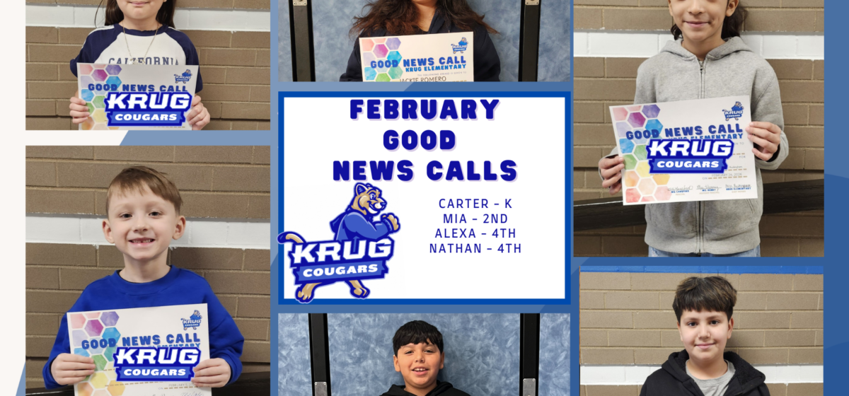 El personal de Krug puede nominar a los estudiantes que hayan demostrado liderazgo, esfuerzo continuo y mejora en la escuela. Una vez nominados, los estudiantes reciben un certificado y se llama a sus casas para compartir la noticia. Estos son los estudiantes que fueron nominados en febrero